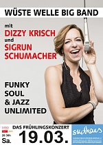 Nach 5 Jahren Wüste Welle BIG BAND (2011 - 2016) ist es nun soweit, den Vibraphonisten Dizzy Krisch zusammen mit Sigrun Schumacher und der Bigband des Freien Radios Wüste Welle auf die Sudhausbühne zu bringen.