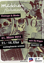 Nach einem sensationellen Start mit über 1.000 Besuchern hält der Mädchenflohmarkt erneut Einzug in Neu-Ulm. Am Samstag, den 01. März 2014, findet in der ratiopharm arena in Neu-Ulm ein spezieller Flohmarkt mit dem Motto „Mädchenflohmarkt - Kleinkunst, Klamotten, Kuriositäten“ statt. Das Konzept sieht vor, dass allerlei schöne Dinge für Mädchen bzw. Frauen angeboten werden. Verkauft werden hierbei nicht nur Secondhand, Vintage oder Retro-Kleidung, sondern alles von selbstgemachten Wohnaccessoires über Marmeladen bis hin zu allen Dingen, die selbstgetrödelt, selbstgestrickt, selbstgebastelt, selbstgekocht oder selbstgewerkelt sind. DJ Niggo bekannt aus dem Berger sorgt für einen guten Sound.