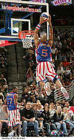 Und dann gibt es noch „Globie“, das Maskottchen der HARLEM GLOBETROTTERS, das im August 2009 fliegen lernte: bei einem Fallschirmsprung aus über 900m mit sicherer Landung vor der Naismith Memorial Basketball Hall of Fame.